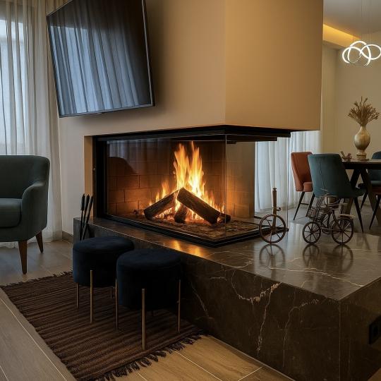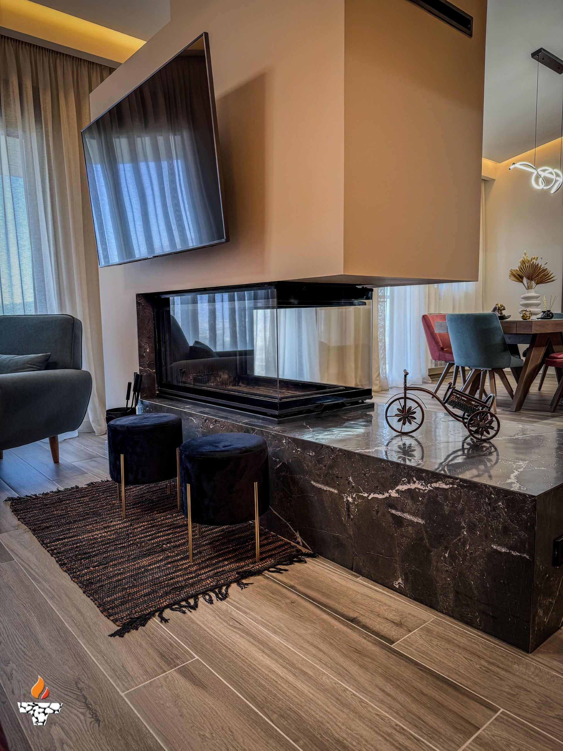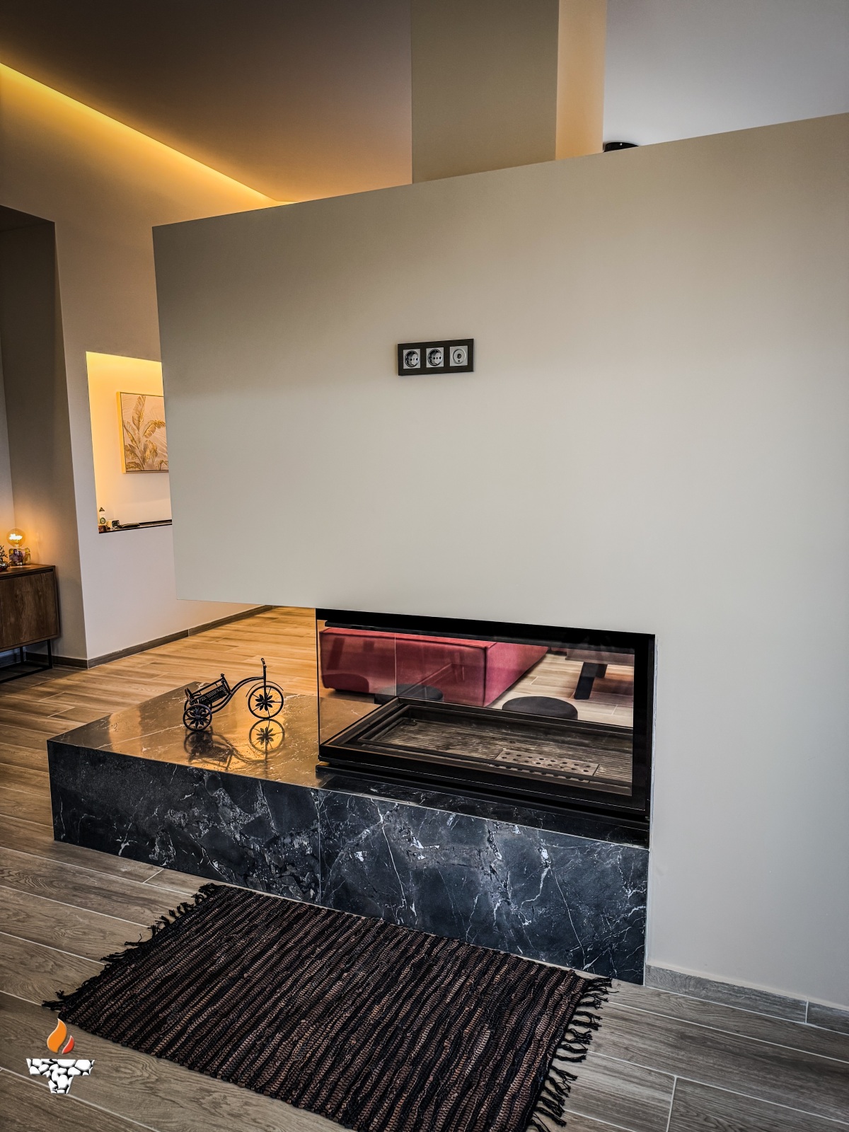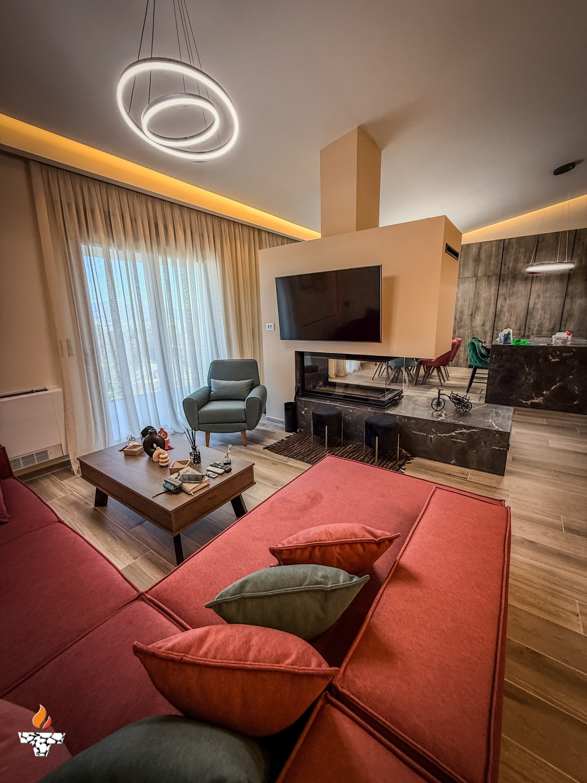 Σε νεόδμητη κατοικία στο Γαλάτσι, αφού εξετάσαμε και μελετήσαμε ενδελεχώς όλο το χώρο, τοποθετήσαμε το ενεργειακό τζάκι Aero U Black Long 100 με μαντέμι, της ελληνικής εταιρίας Θερμοζέλ. Μεταξύ άλλων το τζάκι, διαθέτει μοτέρ, αποσπώμενο δοχείο στάχτης για ευκολία καθαρίσματος, αεροκουρτίνα, σύστημα μετάκαυσης και ρυθμιζόμενο πρωτογενή αέρα. Πρόκειται για ένα πιστοποιημένο προϊόν που φέρει 7 έτη γραπτούς εγγύησης! Με την ολοκλήρωση των εργασιών τοποθέτησης, ζεστάναμε αμεέσως όλο το χώρο!