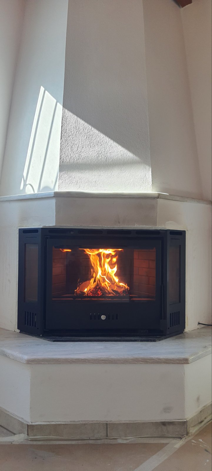 Σε κατοικία στα Βασιλικά Σαλαμίνας, κατόπιν της αυτοψίας που πραγματοποιήθηκε, μετατρέψαμε το παλαιό και δύσχρηστο ελαττωματικό ανοιχτό τζάκι σε ενεργειακό νέας γενιάς, με την ένθετη ενεργειακή εστία πολύγωνη κλασική με μαντέμι της ελληνικής εταιρίας Θερμοζέλ. Το τζάκι μεταξύ άλλων, διαθέτει χαλύβδινο σκελετό, αθόρυβη ανοιγόμενη πόρτα, αφαιρούμενο συρτάρι στάχτης, ενσωματωμένο μοτέρ, αεροκουρτίνα, σύστημα μετάκαυσης και ρυθμιζόμενο πρωτογενή αέρα για να ικανοποιήσει και τους πιο απαιτητικούς! Επιπλέον, συνοδεύεται με 7 έτη εγγύηση! Με την ολοκλήρωση των εργασιών τοποθέτησης, ζεστάναμε αμέσως όλο το χώρο!