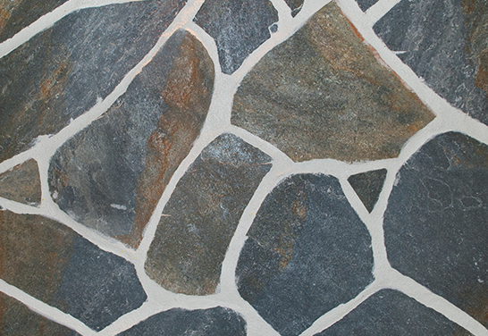 Οι ακανόνιστες πλάκες Μπλε είναι φυσικός ασβεστιτικός σχιστόλιθος που σχίζεται σε λεπτά φύλλα μετά απο κρούση κατα διεύθυνση κάθετα προς την διεύθυνση συμπίεσης των.