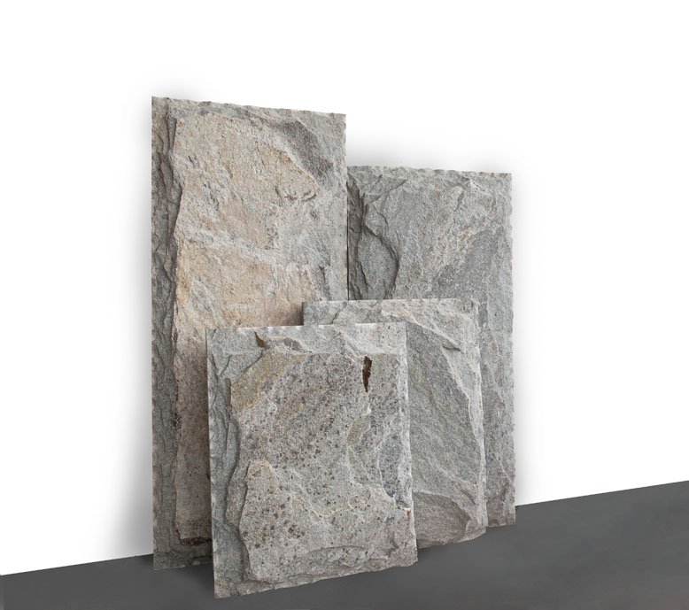 Τα Flat Geo παράγονται από το σχιστόλιθο Καβάλας κατόπιν ειδικής επεξεργασίας. Οι τέσσερις περιμετρικές πλευρές είναι κομμένες. Η μπροστινή επιφάνεια των κομματιών είναι ανάγλυφη και η πίσω η οποία κολλάει στον τοίχο είναι φυσική. Η ανάγλυφη-άγρια επιφάνεια σε συνδυασμό με τους χρωματισμούς του σχιστόλιθου καθιστούν το Rock Face Flat Geo ένα ιδιαίτερο υλικό για τον αρχιτετκονικό σχεδιασμό. Εκτός από την τοποθέτηση της μίας διάστασης, μπορούν να χρησιμοποιηθούν και οι τρεις διαστάσεις μαζί (20cm -30cm - 40cm σε ελεύθερα μήκη). Η τοποθέτηση τους είναι απλή και εύκολη.