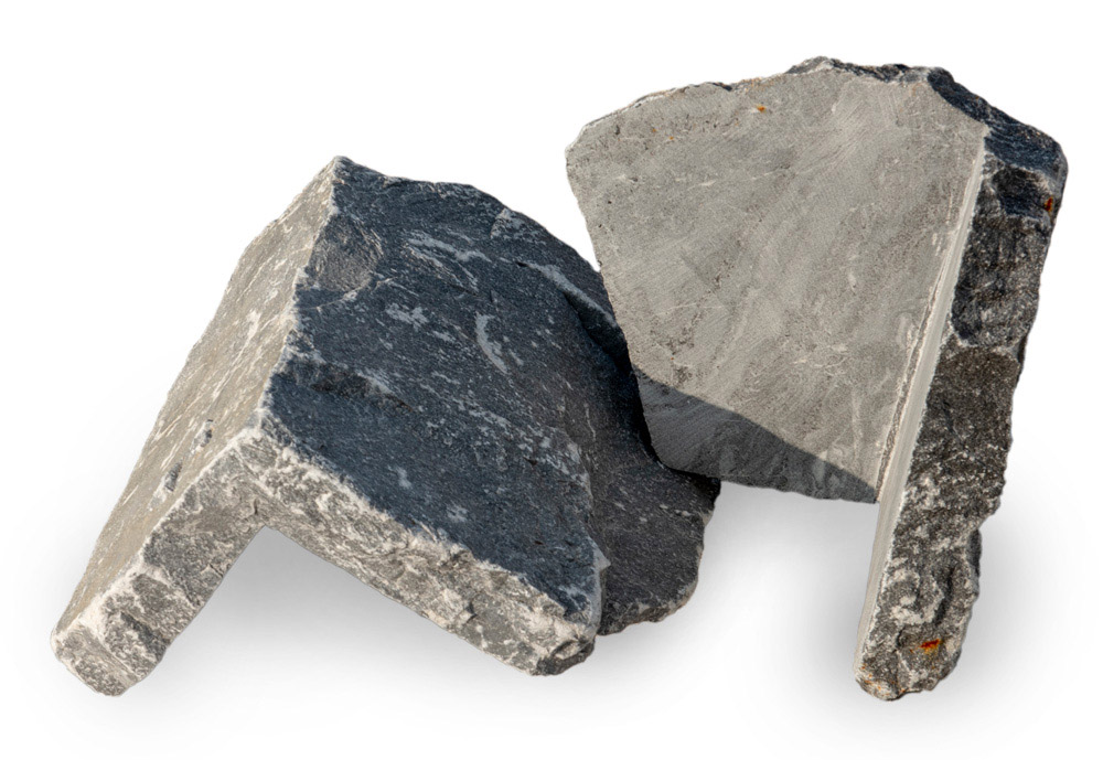 Τα κομμάτια από πέτρα που προορίζονται για ίσιες επιφάνειες είναι περίπου 10-30cm και τα κομμάτια από πού προορίζονται για γωνίες έχουν ύψος 20-30cm και μήκος πλευρών 10-30 cm περίπου.