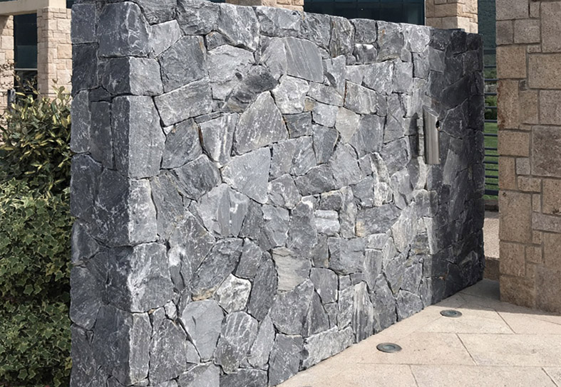 Τοποθέτηση: το Rock Face (καπάκι) μαρμαρόπετρα Έβενος τοποθετείται με την χρήση λάσπης τσιμέντου είτε με αρμό είτε χωρίς αρμό-ξερολίθια.
