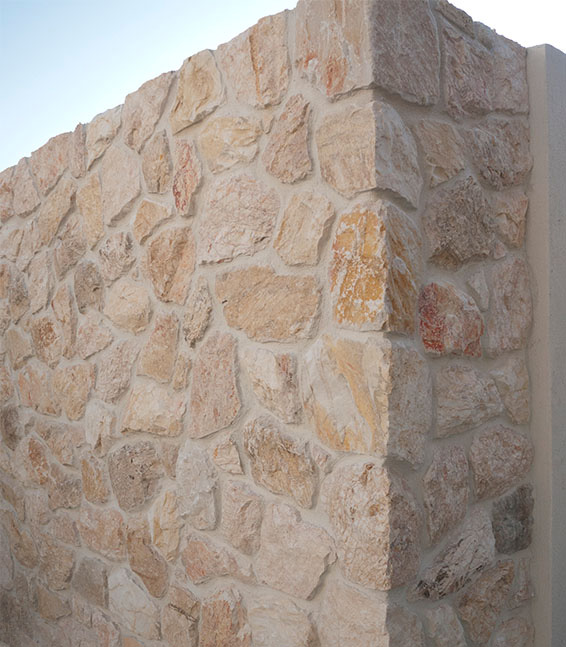 Χρησιμοποιείται για επενδύσεις σ΄ εσωτερικούς και εξωτερικούς χώρους όπως πέτρινα τοιχία , πέτρινα σπίτια, πέτρινα παρτέρια, περιφράξεις, όψεις και εισόδους κτηρίων, γωνίες από πέτρα κολώνες, διακόσμηση κήπου κλπ.