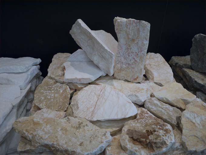 Τα κομμάτια από πέτρα που προορίζονται για ίσιες επιφάνειες είναι περίπου 10-30cm και τα κομμάτια από πού προορίζονται για γωνίες έχουν ύψος 20-30cm και μήκος πλευρών 10-30 cm περίπου.