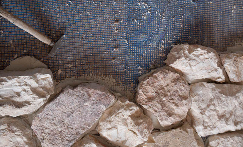 Τοποθέτηση : το Rock Face (καπάκι) μαρμαρόπετρα Μελάνθη τοποθετείται με την χρήση λάσπης τσιμέντου είτε με αρμό είτε χωρίς αρμό-ξερολίθια.