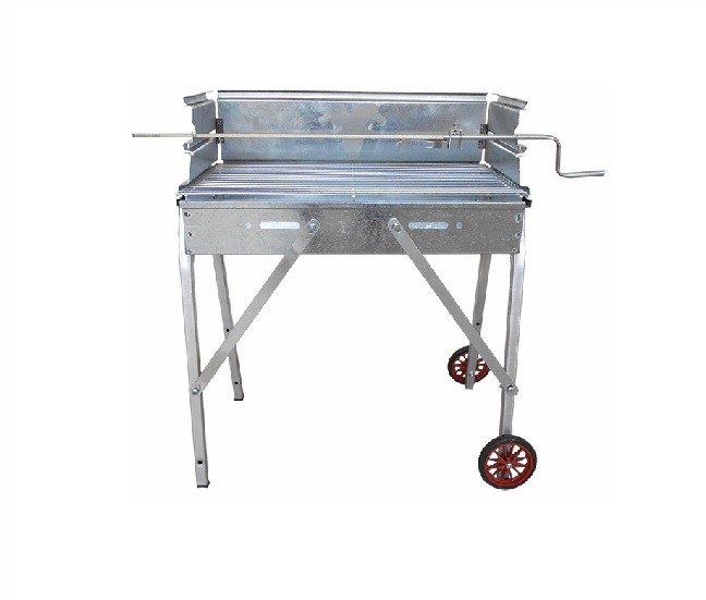 Υπάρχει και θήκη για σούβλα ψησίματος και ροδάκια για την εύκολη μεταφορά του.