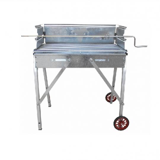 Ψησταράκι γαλβανιζέ με γαλβανιζέ πλάτη προστασίας και 3 θέσεις για τη σχάρα. Υπάρχει και θήκη για σούβλα ψησίματος και ροδάκια για την εύκολη μεταφορά του.